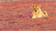 Lioness on Carpet of Red