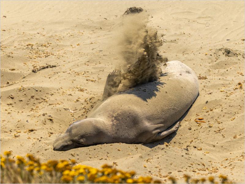 Young Elephant Seal trying to keep cool